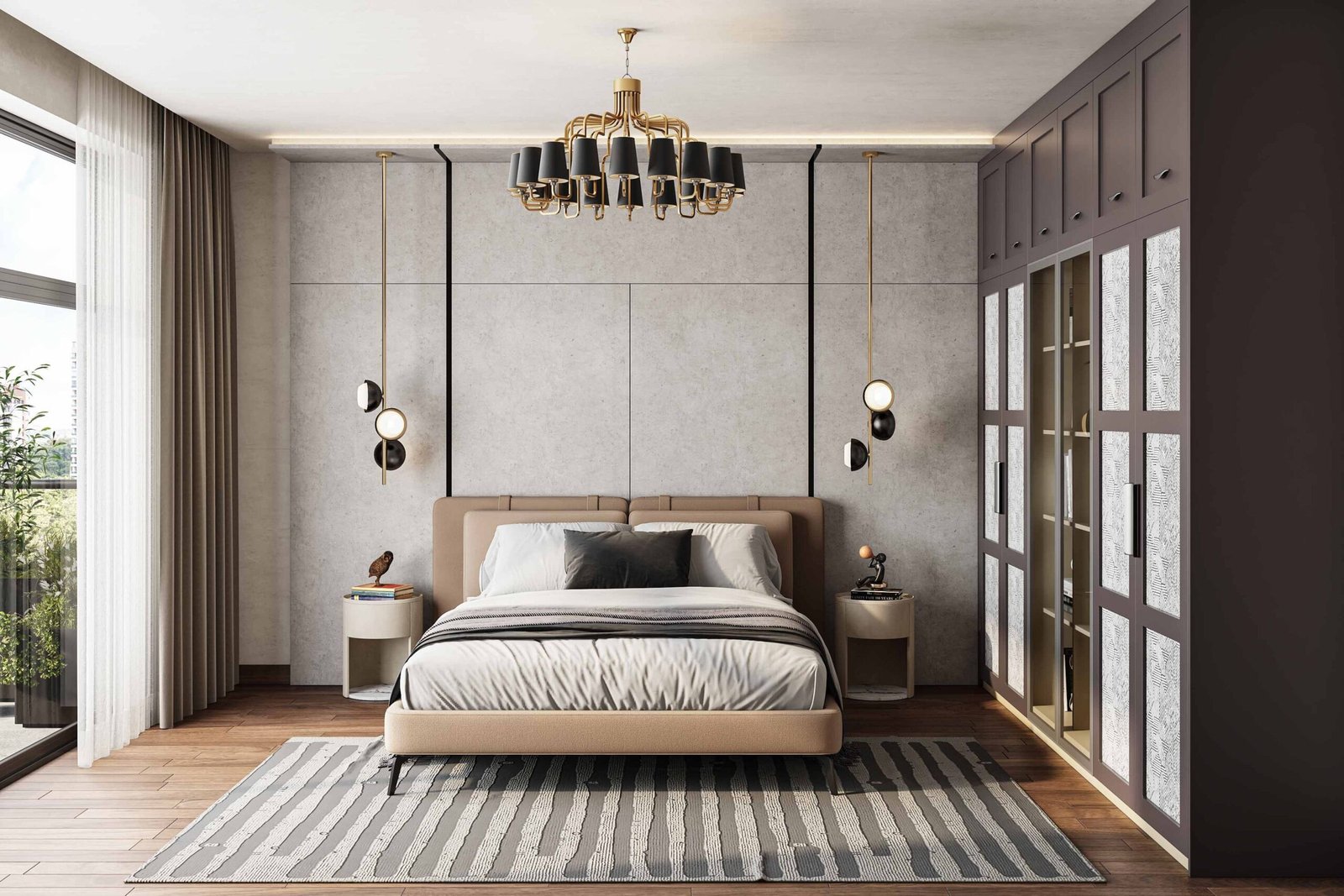 Type: Single Layered Plain False Ceiling with Linear Drop on Bedhead Side