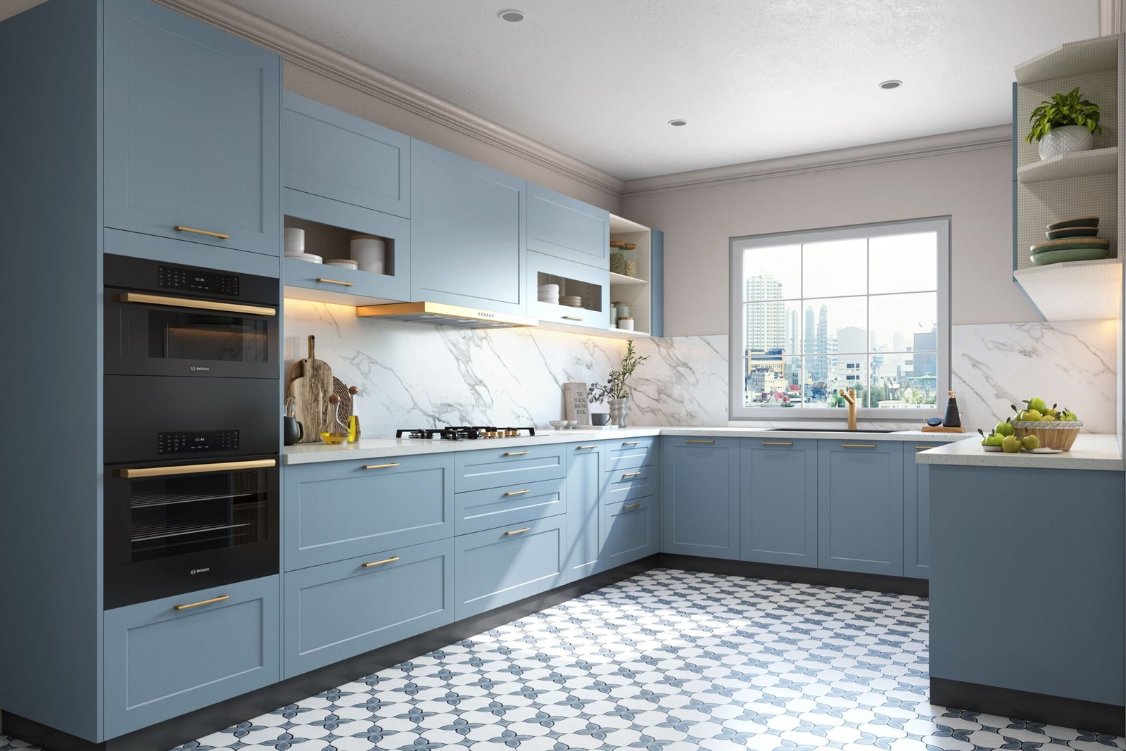 – The subtle color palette makes it versatile, complementing the light blue cabinetry and marble backsplash