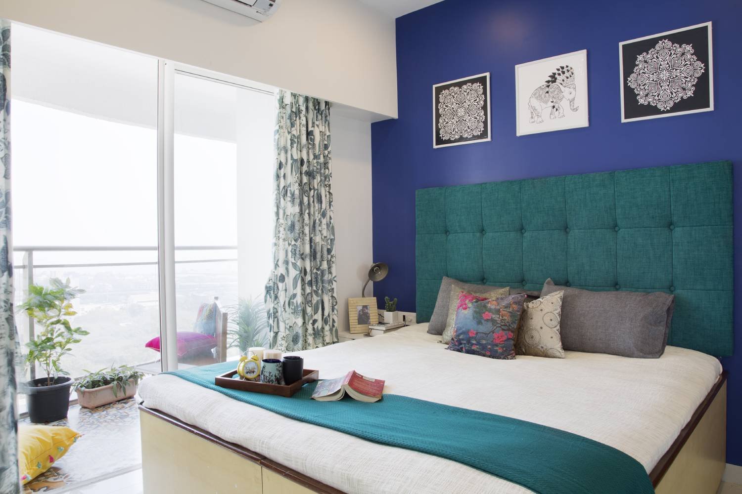 What We Love: We love how the blue accents in this 2BHK flat add a refreshing and cohesive touch across all rooms. The living room, dining area, home office, and guest bedroom are tied together through subtle yet striking shades of blue, creating a modern and inviting atmosphere.