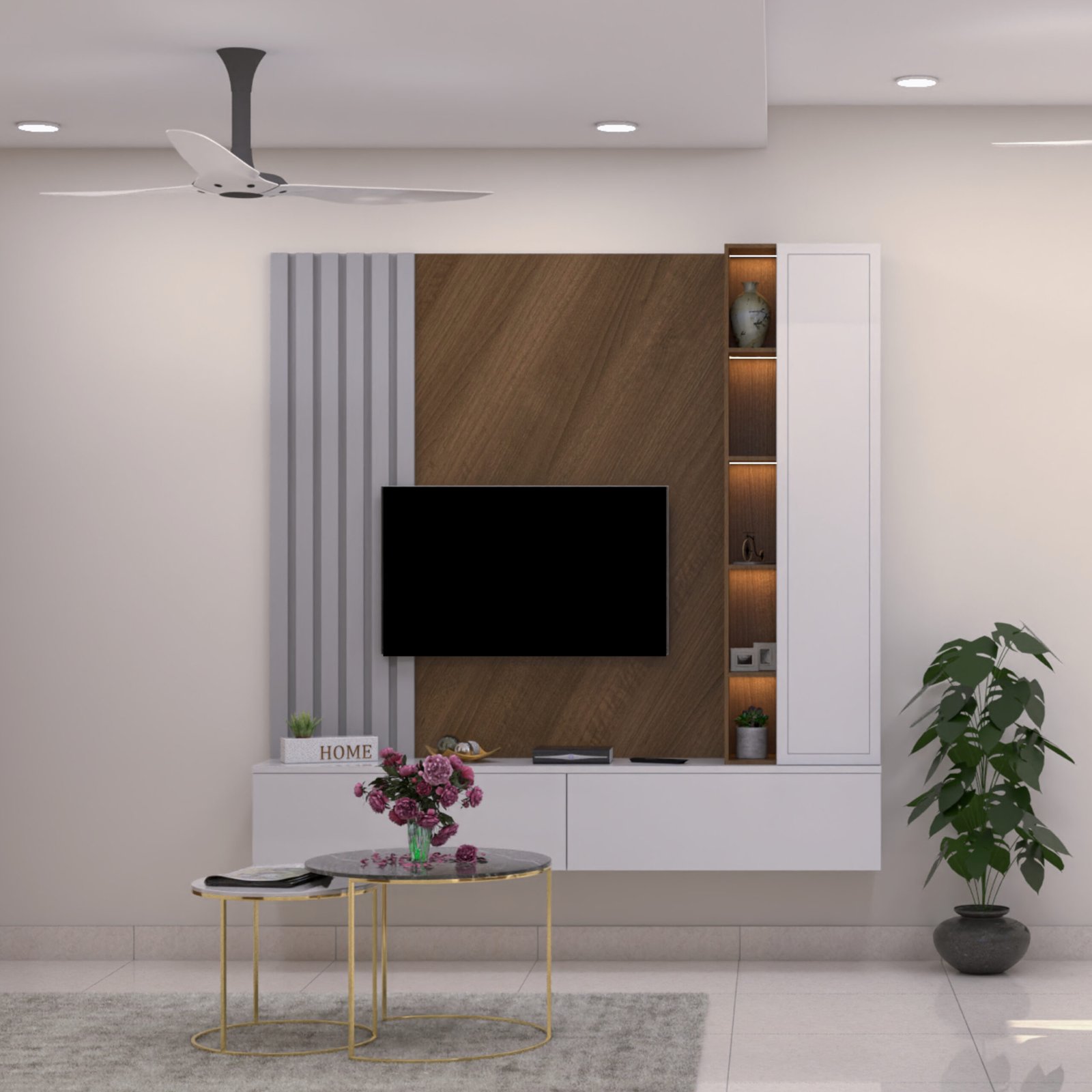 Storage Features: This TV unit showcases a sleek, contemporary design with a combination of open shelving and hidden drawers, providing ample space for electronics, decorative items, and accessories while maintaining a minimalist aesthetic.